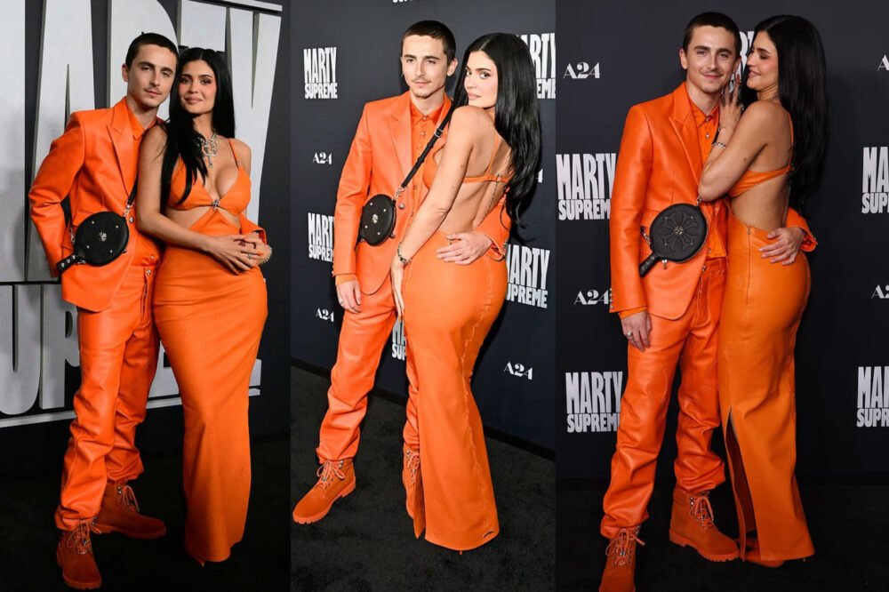 Kylie Jenner and Timothée Chalamet Wear Matching Orange Outfits at the L.A. Premiere of ‘Marty Supreme’